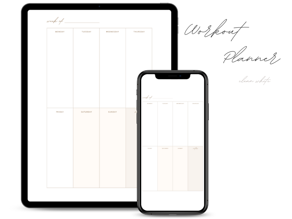 Smash your workout goals with the Clean White Weekly Workout Planner.